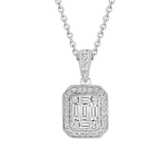 This stunning 18ct white gold pendant features a cluster of invisible set NATURAL diamonds, combining round and baguette shapes, totalling 0.50 carats. The diamonds, of G/VS quality, offer exceptional clarity and colour, ensuring a brilliant sparkle. The invisible setting creates a seamless, luxurious look, making this pendant a perfect blend of elegance and sophistication—ideal for everyday wear. Paired with a 45cm chain, it exudes timeless elegance for every day.
