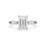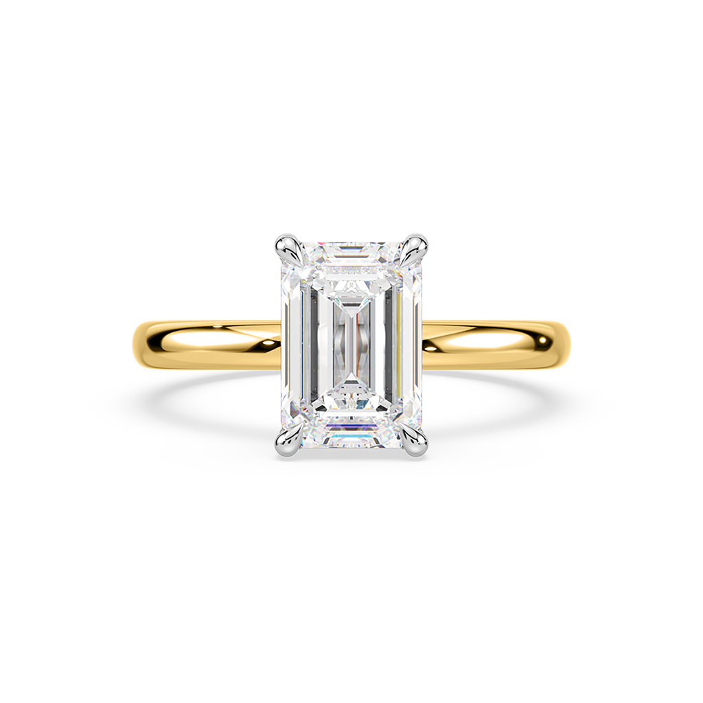 This stunning engagement ring is crafted from 18ct yellow or white gold and features a classic four-claw solitaire setting. It is set with a breathtaking 2.50ct emerald cut IGI Certified LAB GROWN diamond, renowned for its exceptional colour and clarity. Our ready-made rings are all set with diamonds of E colour and VS1 clarity or better. Designed with everyday elegance in mind, this ring is expertly crafted to allow a wedding band to sit flush alongside it, offering a seamless and timeless pairing.